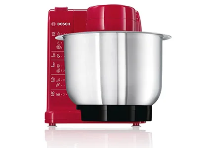 Кухонный комбайн MUM4 - проверенный временем прибор переработки продуктов - может похвастаться уникальным качеством Bosch и широким выбором аксессуаров. Выполнен в красном цвете.