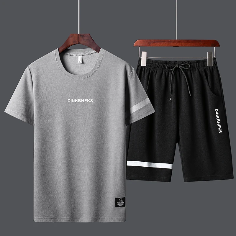 Мужской комплект из футболки и шортов, Повседневный дышащий спортив...