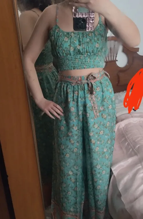 Я купил его 24 февраля, и он пришел 6 марта, очень быстрая доставка в Сарагосу, Испания, качество хорошее, ткань очень свежая, идеально подходит для лета, Я купил размер М, мои размеры 85 груди, 70 талии и 95 бедра, я 1'60 и вес 56 кг, штаны подходят мне Отлично, но верх немного короткий, и мне пришлось поднять штаны, чтобы живот не видел так много, И это тоже верх немного шире, так что мне придется исправить его с швейной машиной, но в остальном это супер хорошее качество, цена очень хорошая, я рекомендую вашу покупку