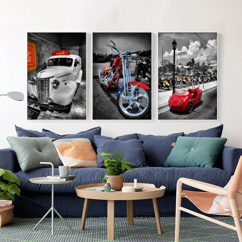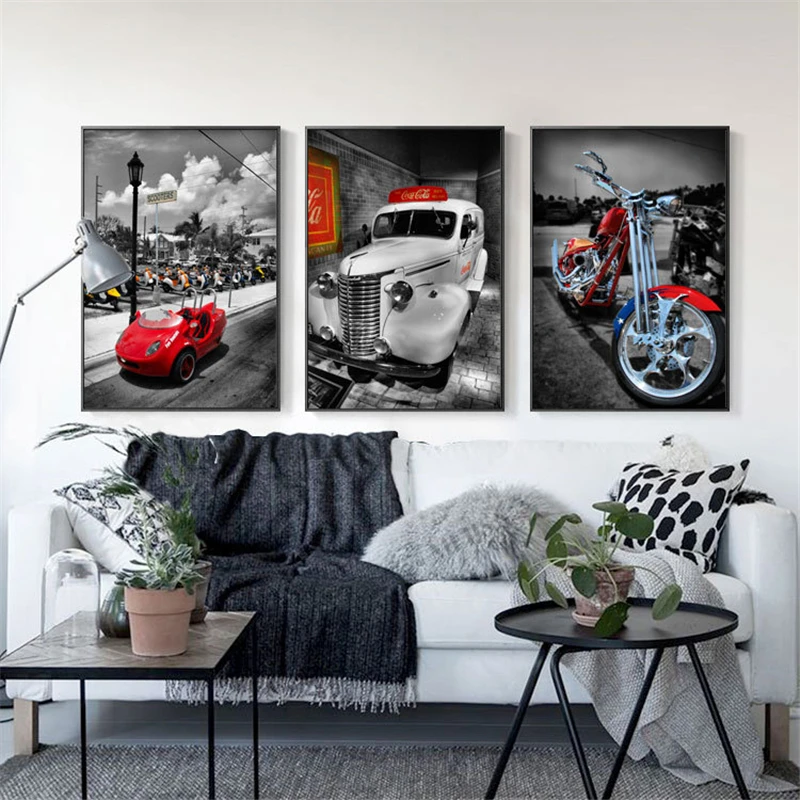 Американский ретро мотоцикл красный автомобиль пейзаж холст живопись плакат Настенные картины гостиная домашний диван фоновое украшение