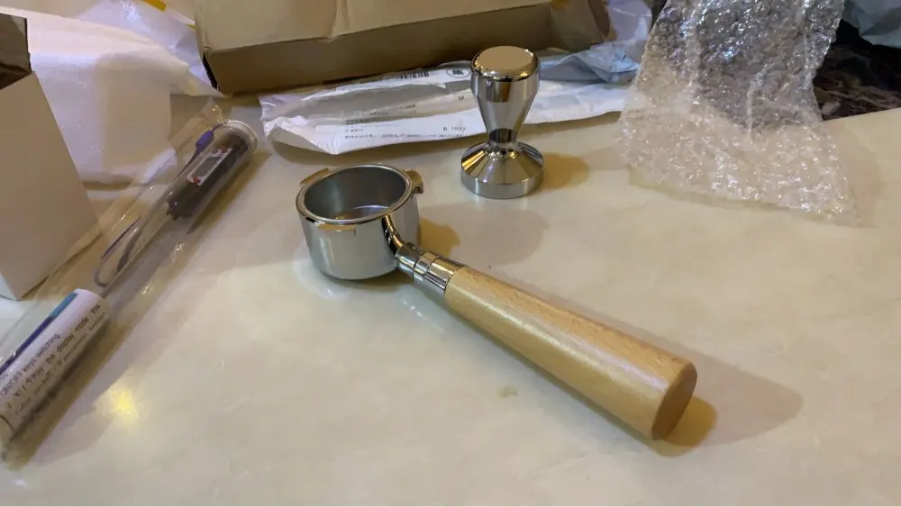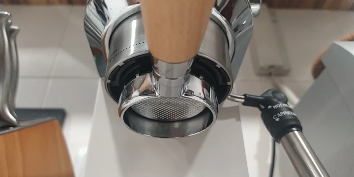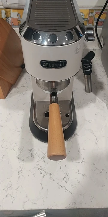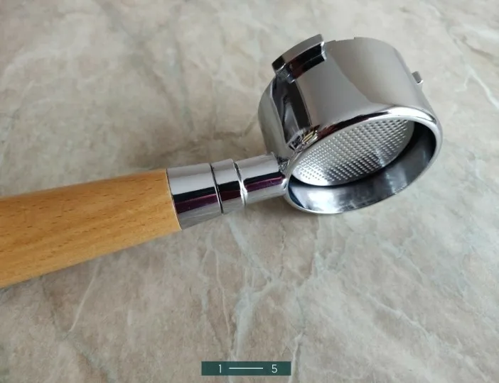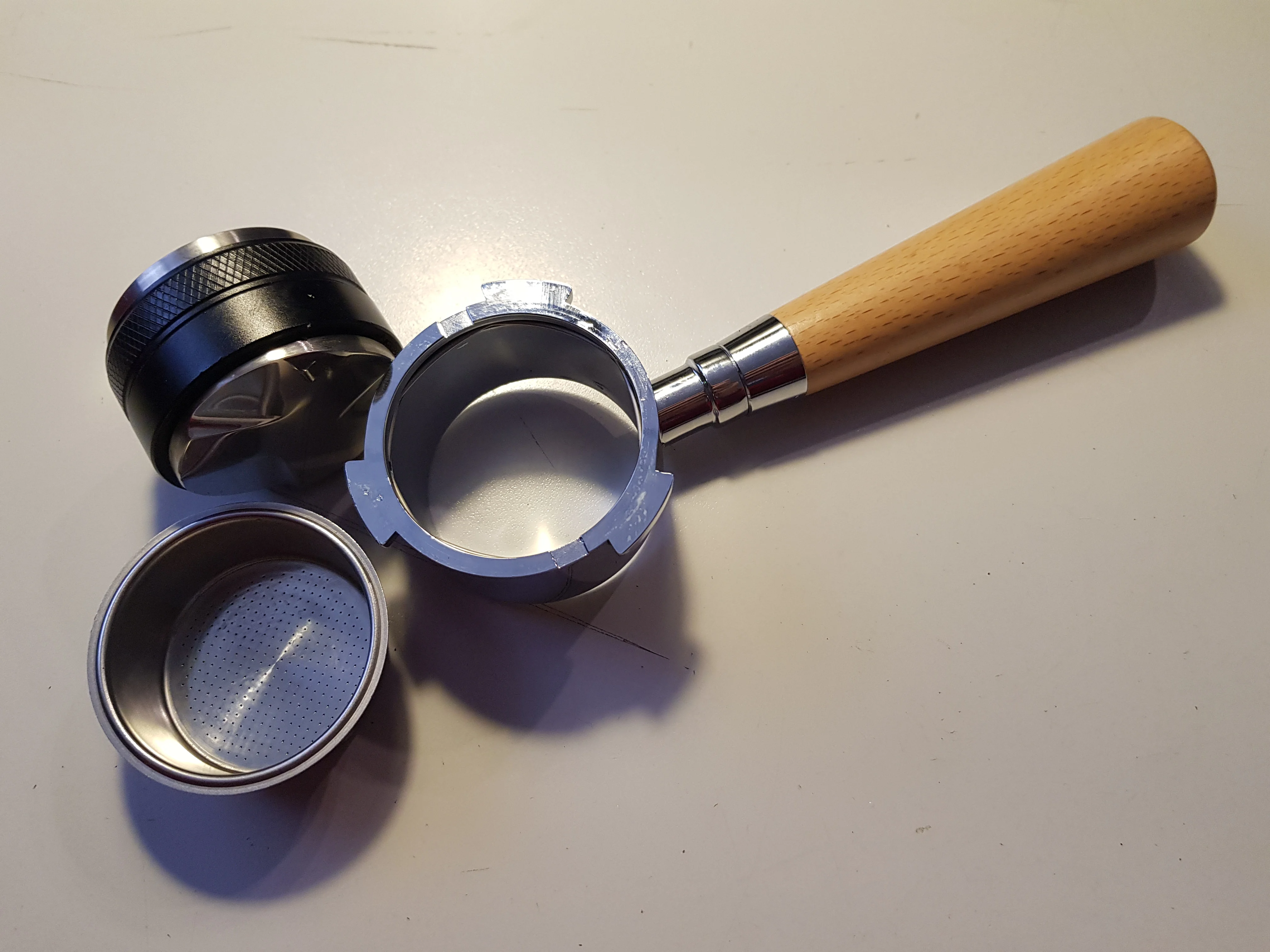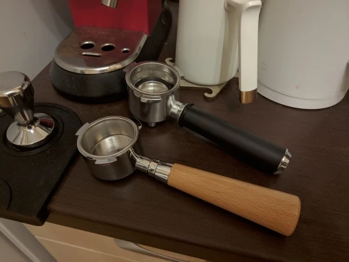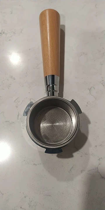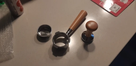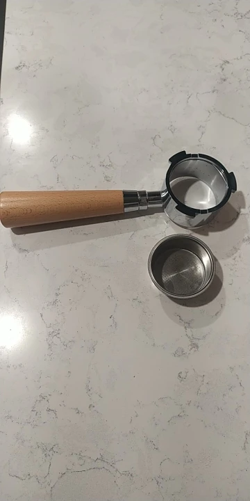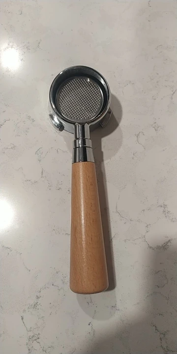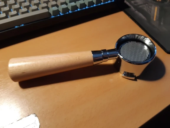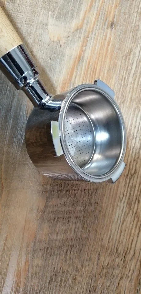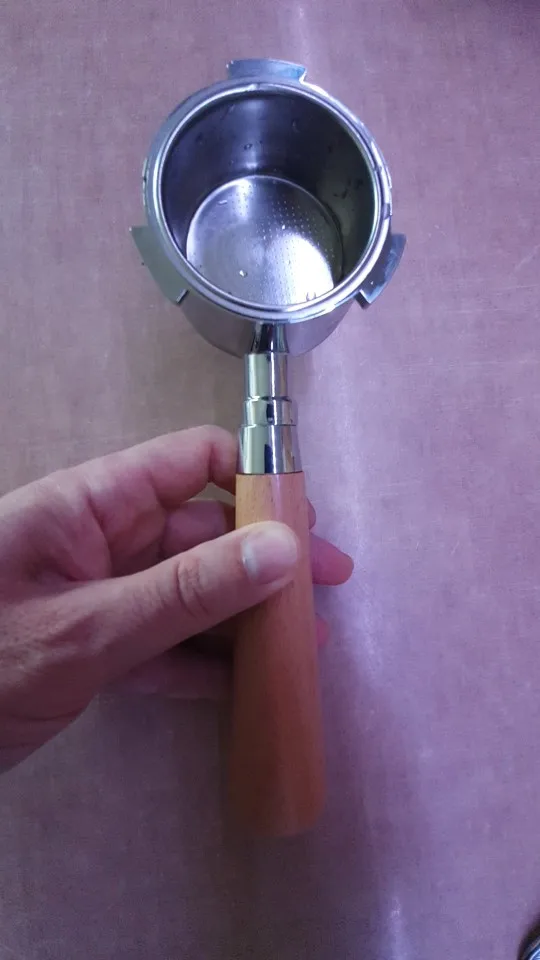 Портафильтр был фантастическим, мне понравилось, так как я наконец-то могу накрыть с ним лучший эспрессо. Но качество тоже отличное. Люблю деревянную работу над этой вещью, и она также идеально подходит на моем Delonghi decia Делюкс.
