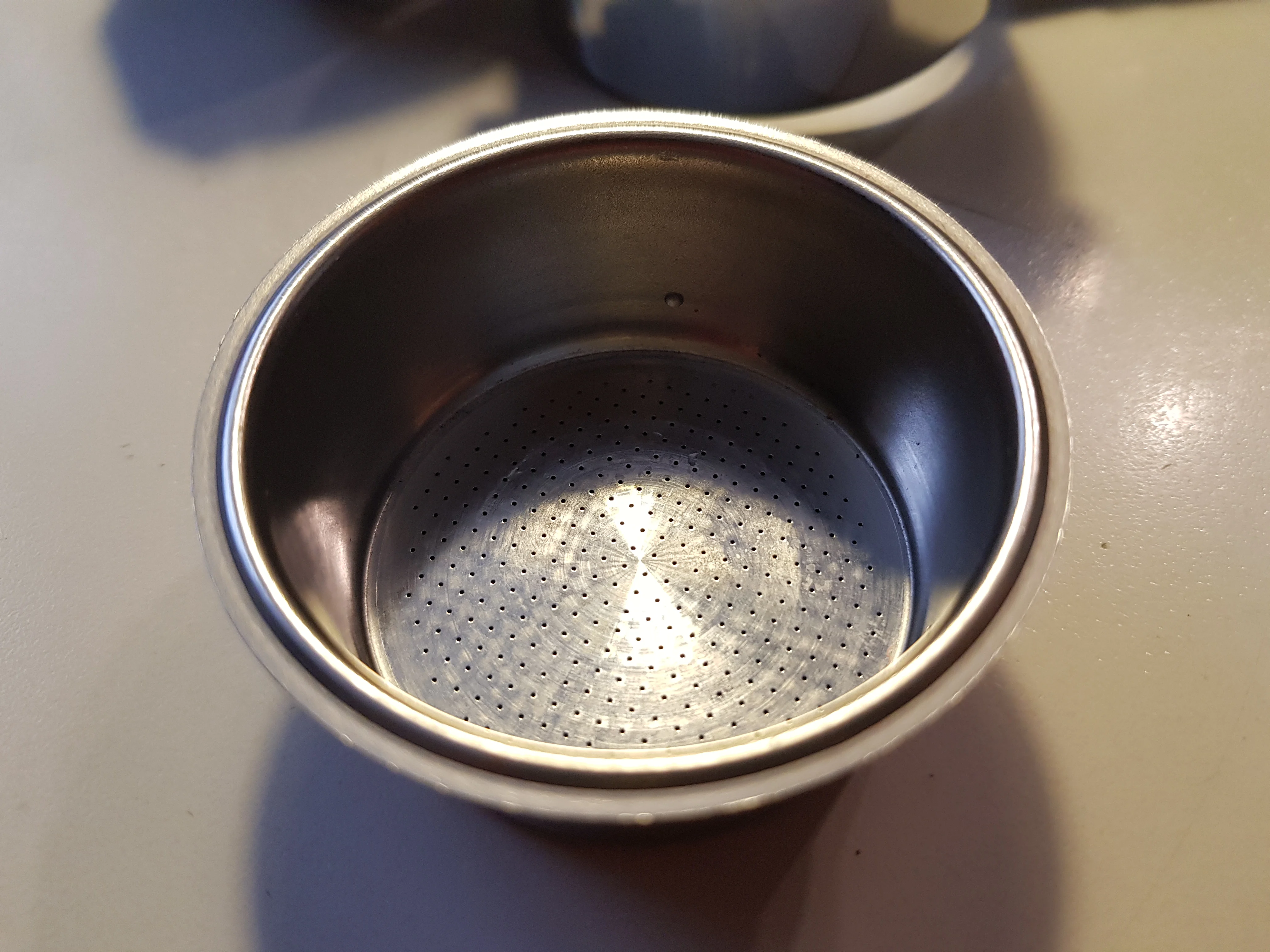 Идеально подходит для моего DeLonghi devia. Поставляется с довольно большой двойной корзиной (для 51 мм), хорошо подходит для 18 г и даже больше. Ручка легко отвинчивается, поэтому нужна небольшая забота при стучании шайб. Качество как портафильтра, так и корзины хорошее. Хром не сползает где угодно и выглядит так, будто нет плохих пятен там, где он может быть. Корзина имеет небольшой конус (как и все), поэтому мне нужно 18 г кофе, чтобы не мешать. Очень рад, настоятельно рекомендую.
