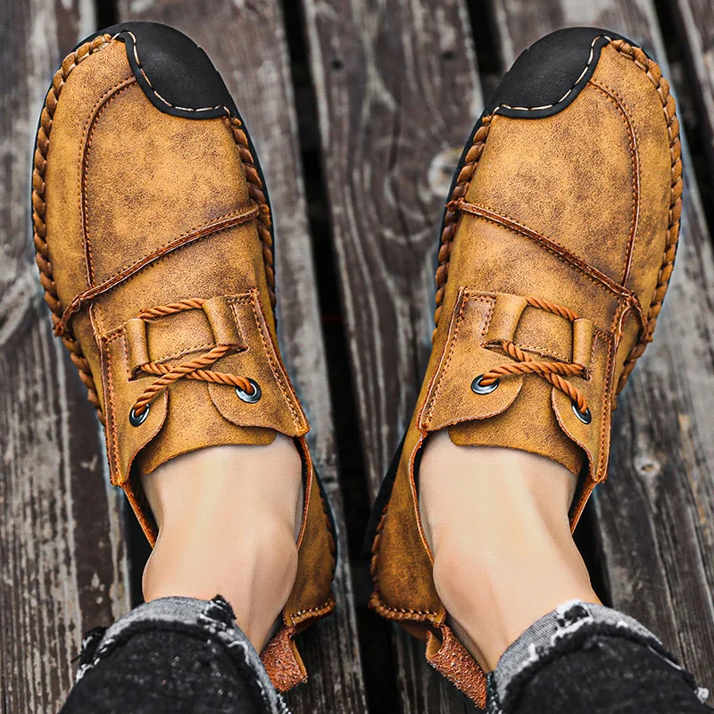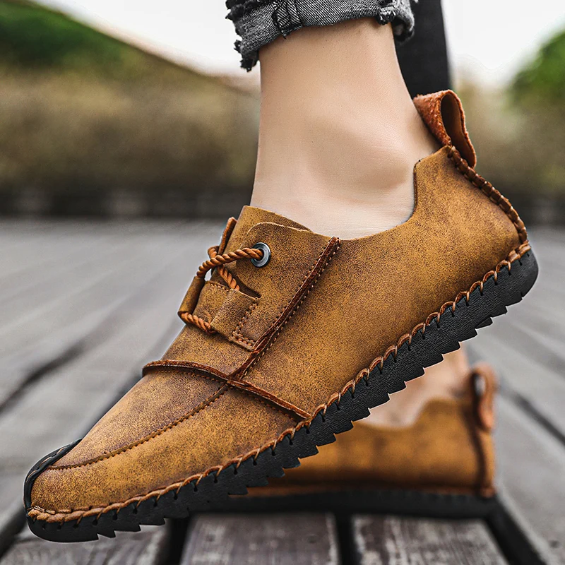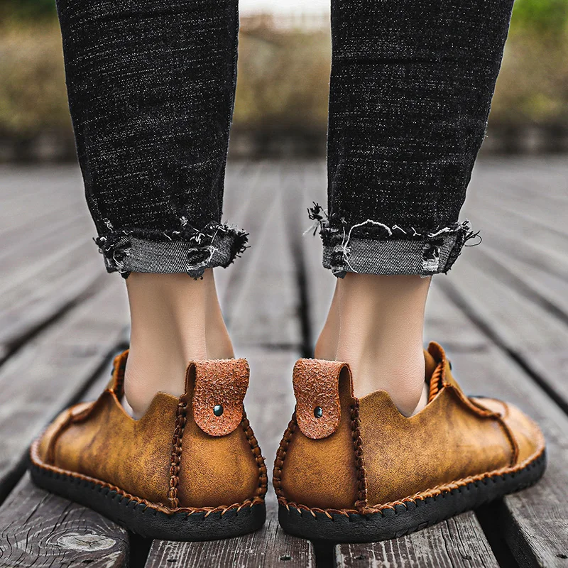 Мокасины мужские кожаные, дышащие лоферы, без застежки, плоская подошва, Повседневная Уличная обувь, большой размер 48