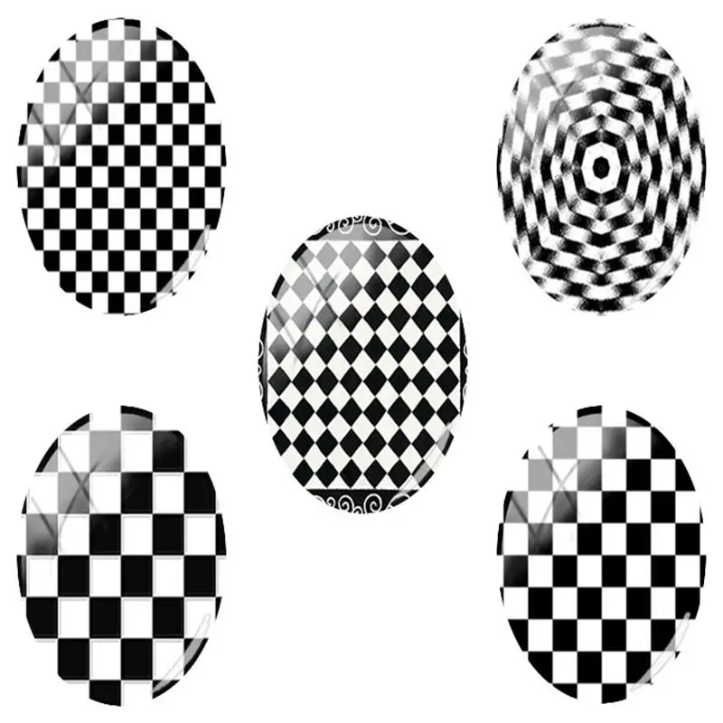 TAFREE 18x25 мм ручной работы черно-белый шахматный узор Овальные Стеклянные Кабошоны Купол ювелирные изделия основа Подвески TX541