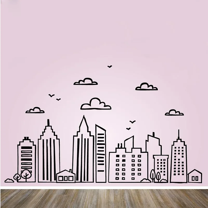 * 1 комплект ofLarge Doodled city skyline Bird Cloud Настенная Наклейка для спальни гостиной городской пейзаж Наклейка на стену виниловая декорация для детской комнаты