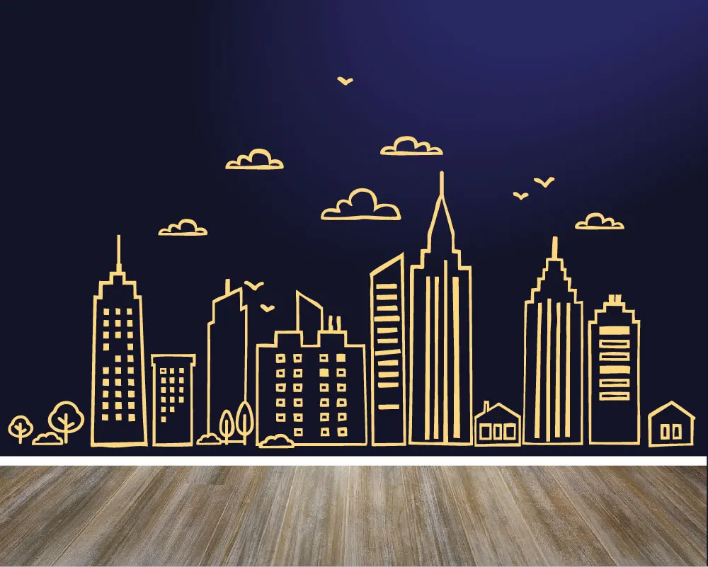 ThemeLarge Doodled city skyline Bird Cloud Wall Sticker