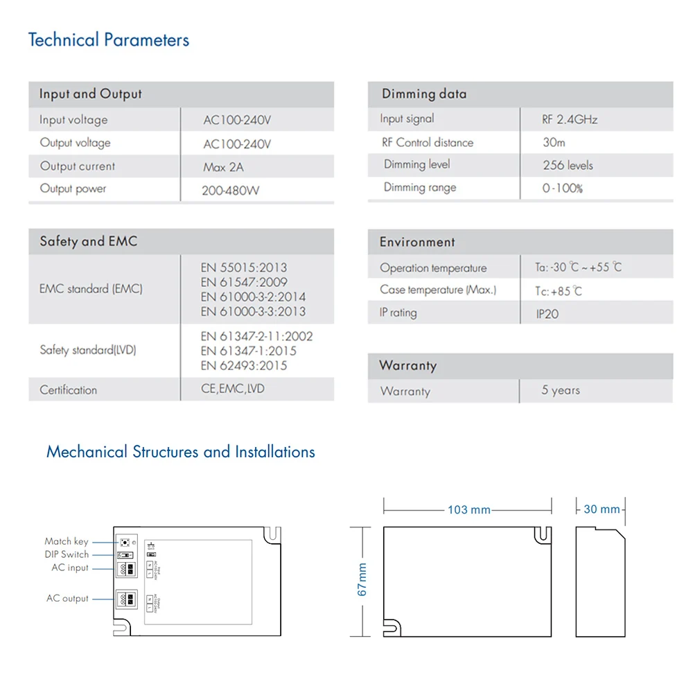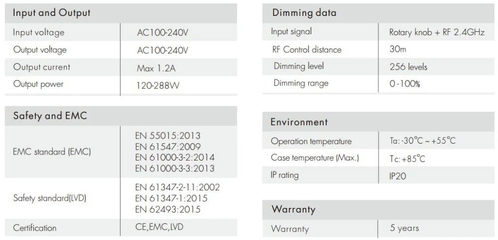 ● Совместимость с пультом дистанционного управления Skydance 2,4G dimming.