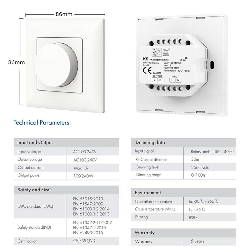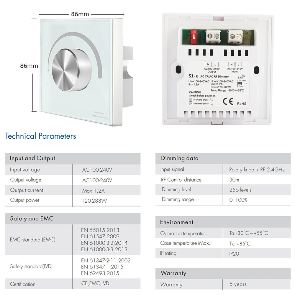 Название продукта: 2,4G беспроводной RF Triac светодиодный диммер с функцией регулировки яркости