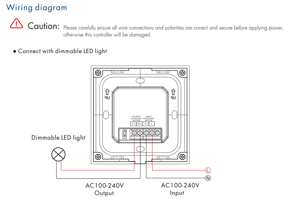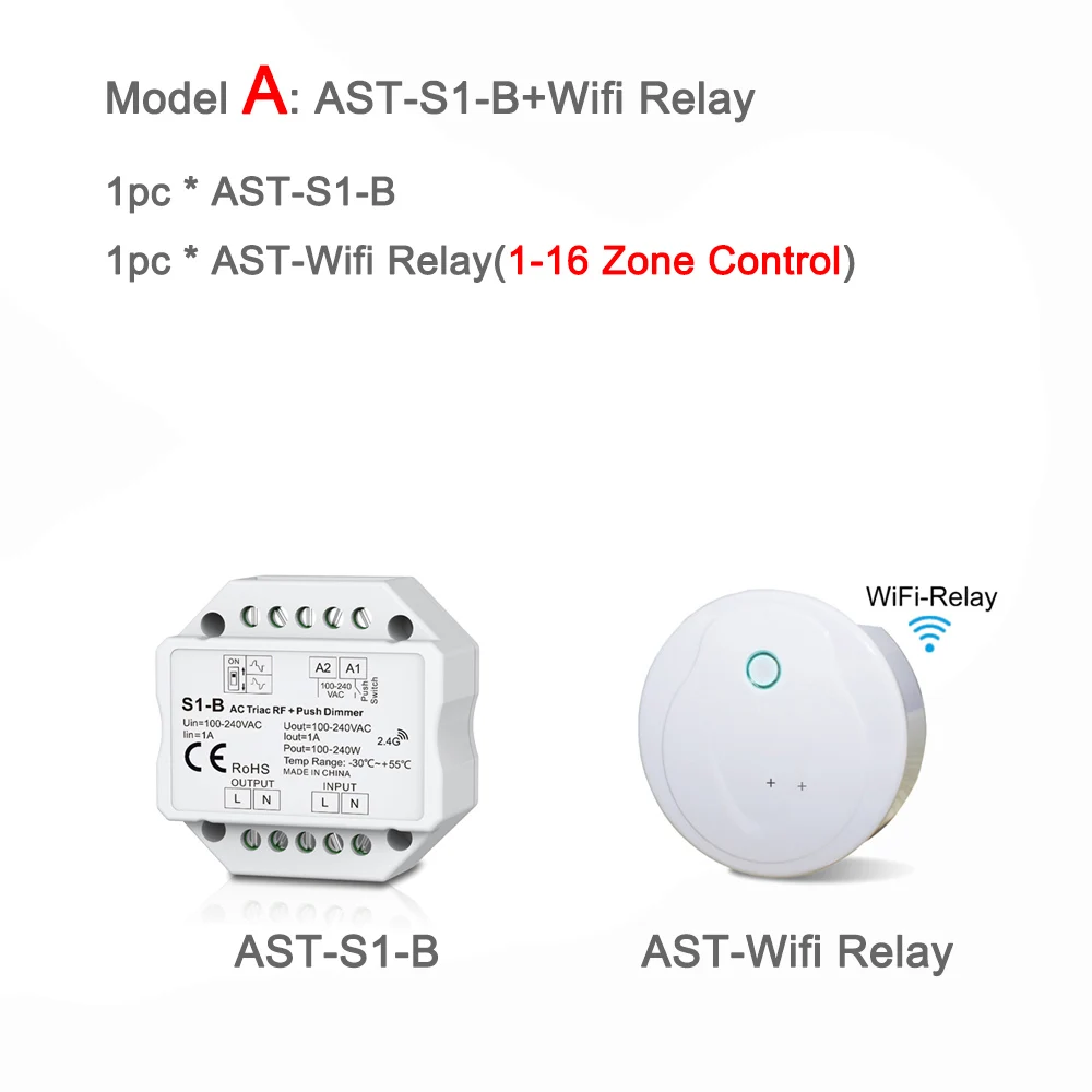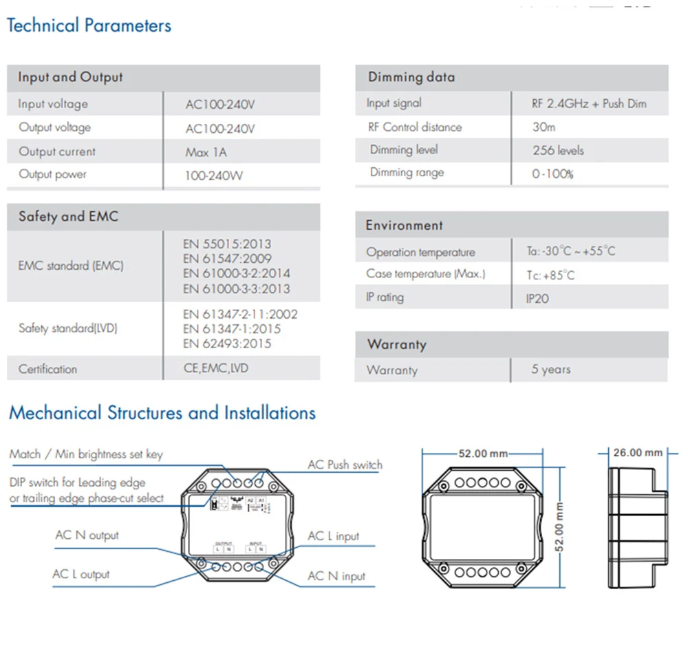 ● РЧ AC фазный диммер, 1 канал 2А Выход.