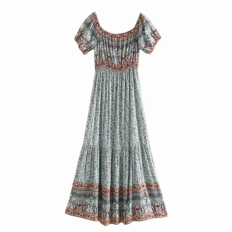 Женское винтажное богемное платье макси, длинное пляжное платье с ц...