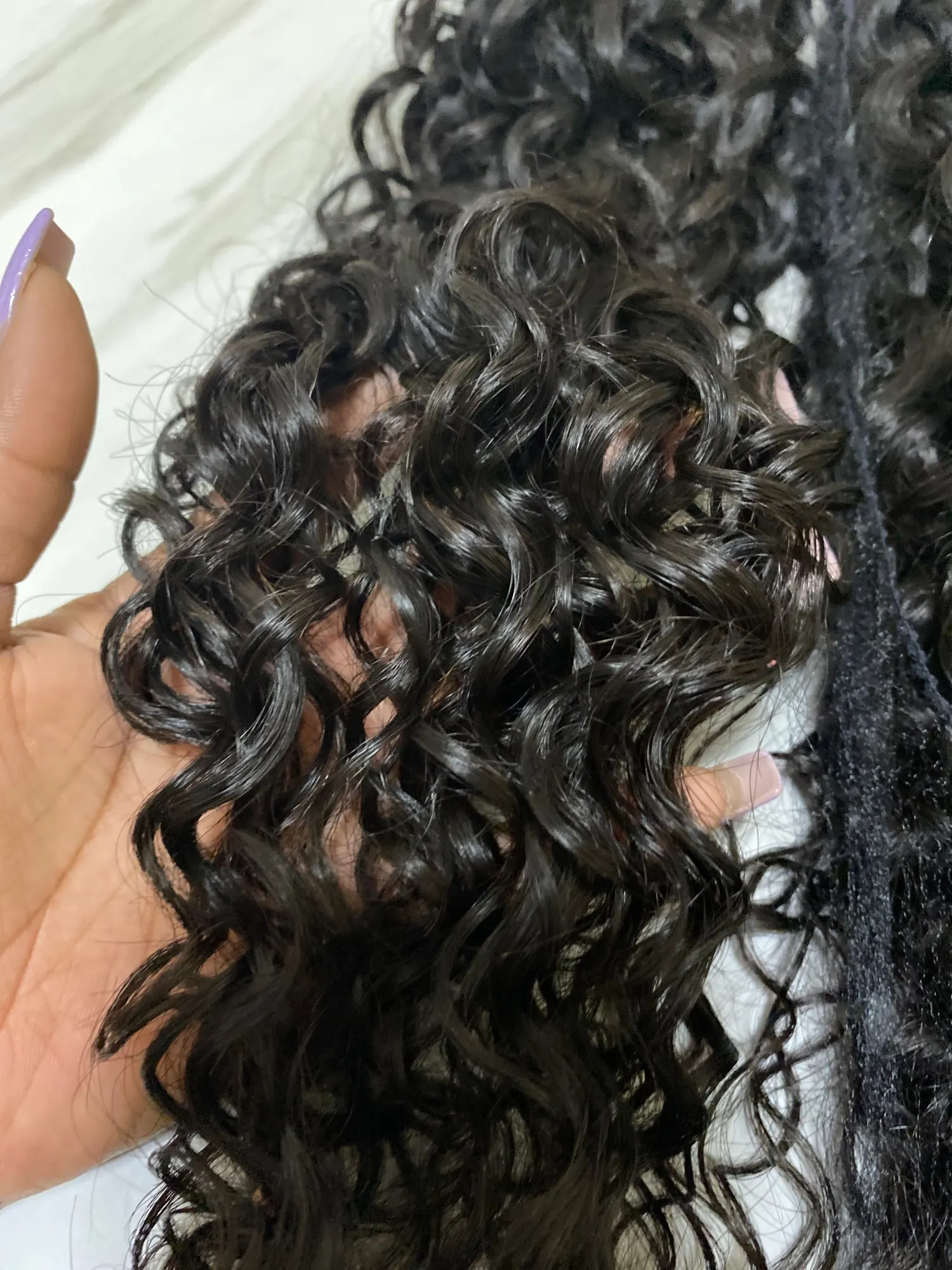 Так как это 100% человеческие девственные волосы, волосы все еще полны с целой кутикулой выровненные в том же направлении. После того, как мы сделаем прямые волосы разными узорами завитков, кутикулы на каждой прядке волос больше не лежат рядом друг с другом, они могут идти вверх и вперед, вот почему иногда вы чувствуете, что не очень легко пробежать пальцами по волосам, И это просто потому, что он имеет прическу, и кутикулы останавливают ваши пальцы, потому что от того, что они могут отреагировать, ваши пальцы являются своего рода захватчиком. Волосы могут запутываться, потому что они слишком сухие и собирают слишком много пыли и других вещей, в это время не забывайте мыть их с шампунем, потому что это сделает его еще хуже. Постирайте его чистой теплой водой и в глубоком состоянии на некоторое время, это станет лучше и лучше!