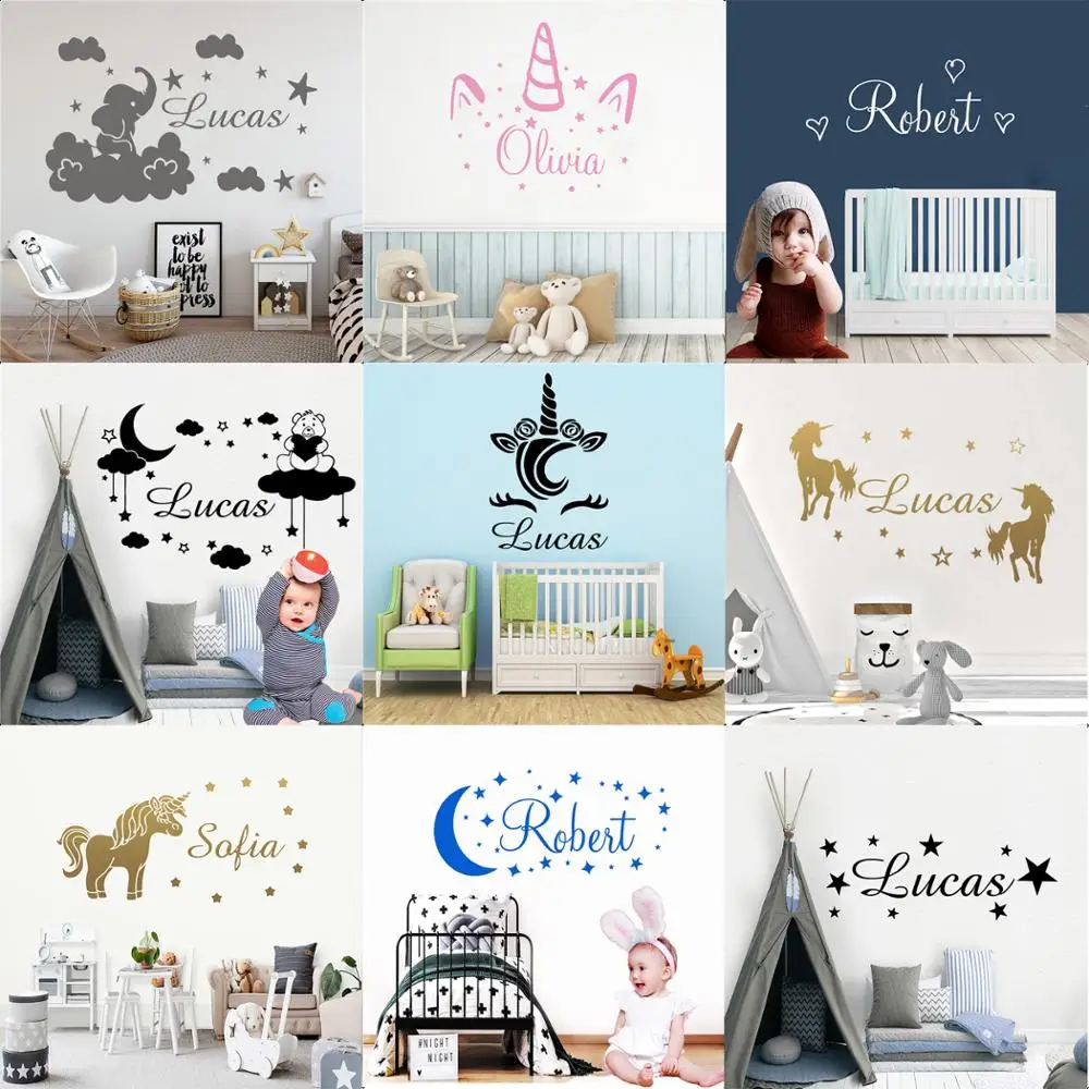 Милые настенные наклейки Микки на заказ, наклейка с именем, наклейка Единорог для детской комнаты, Декор, сказочные обои, постер для детской росписи