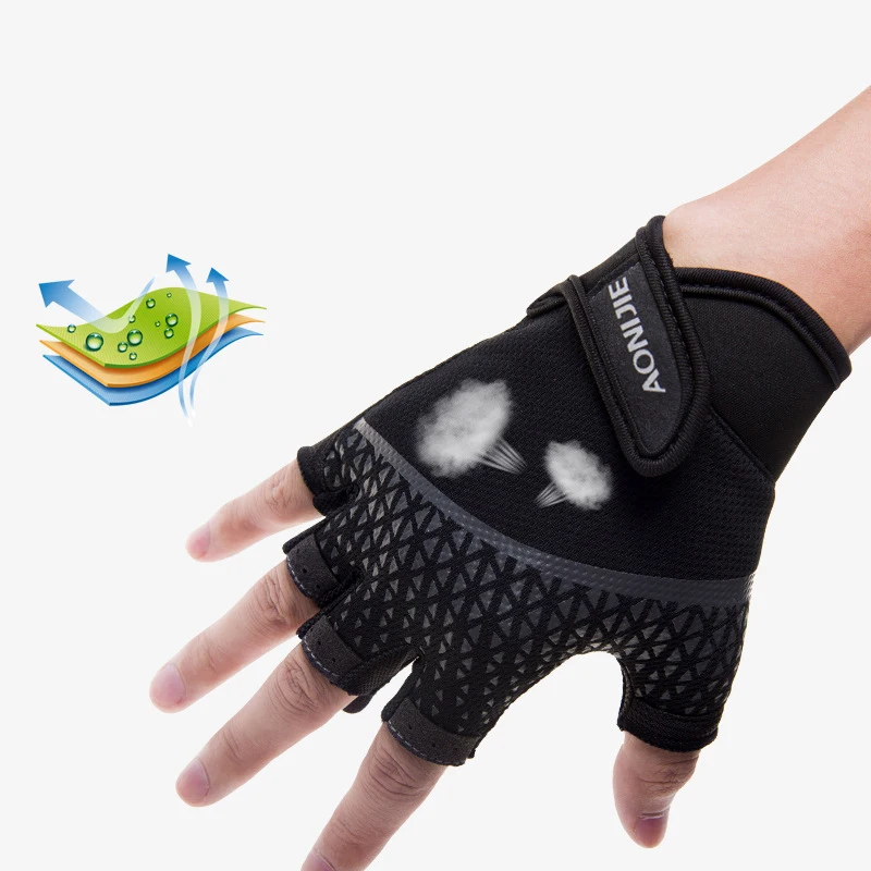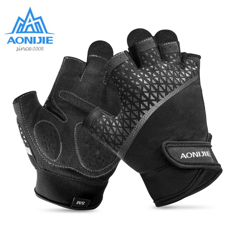 Перчатки Aonijie на полпальца, дышащие, амортизирующие, Нескользящие, для спорта на открытом воздухе, велоспорта, бега, кемпинга, тренажерного зала, фитнеса, тяжелой атлетики