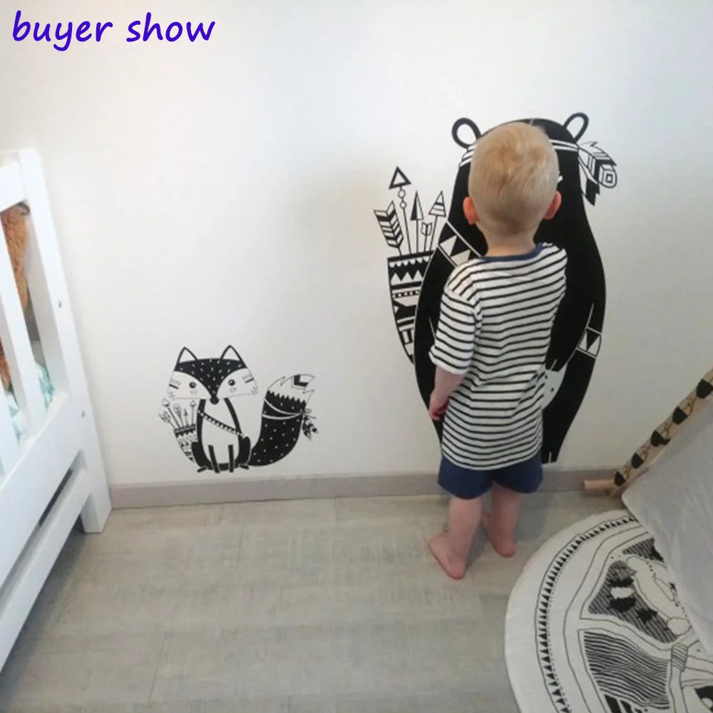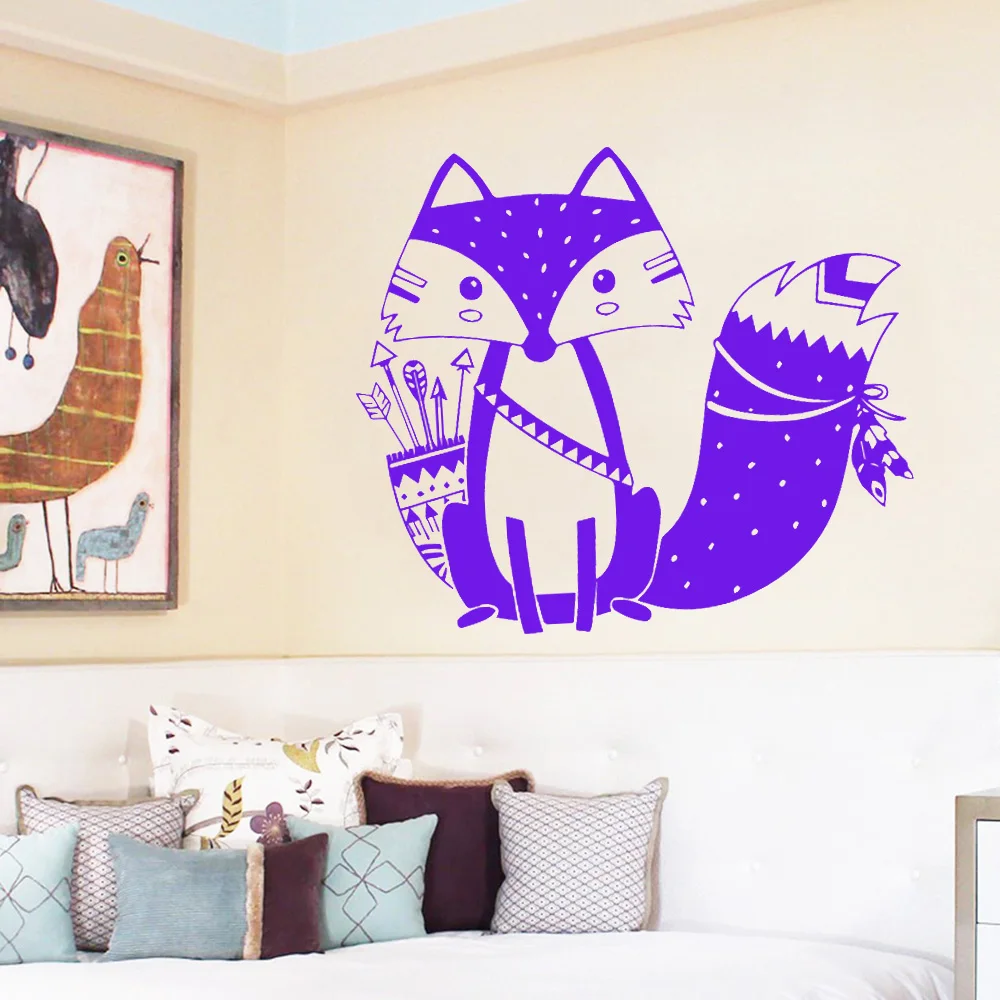 Виниловая наклейка на стену в скандинавском стиле с изображением лисы для детей, украшения для детской комнаты, украшения для спальни в виде животных, Настенная Наклейка s