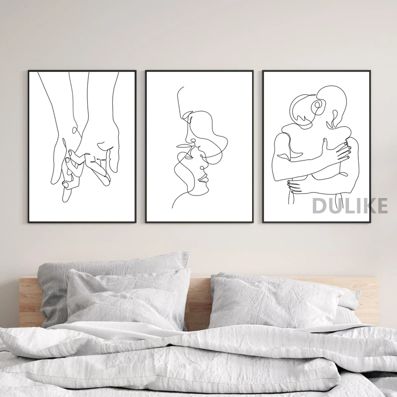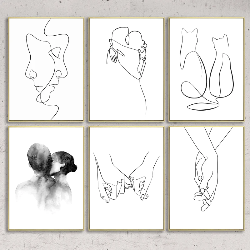 Парные линии рисования скетч печати минималистский абстрактные стены Искусство Холст Живопись черный белый Рисунок Скандинавская постер декоративный для спальни