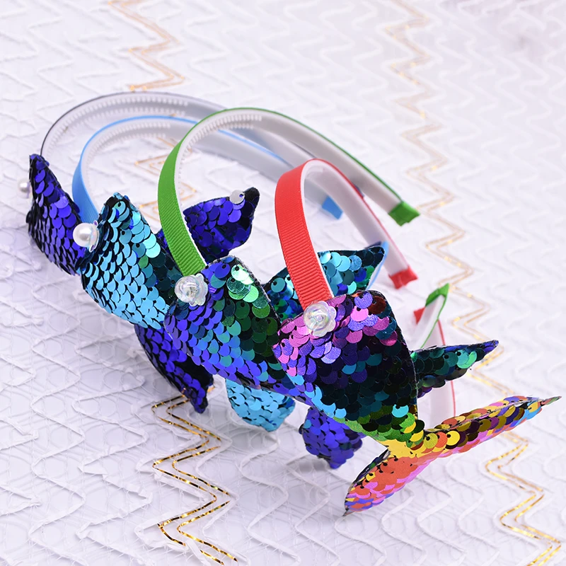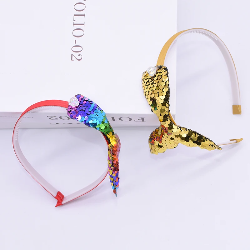 Радуга одеяло хвост русалки Жемчуг повязки для волос аксессуары для волос Реверсивный Блестки для волос резинки Головные уборы для русалки для маленьких девочек вечерние повязка на голову