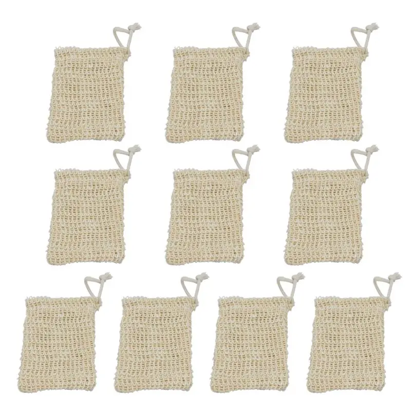 10 упаковок, мешочек для мыла из сизаля, натуральная мягкая отшелушивающая сетка, держатель для мыла