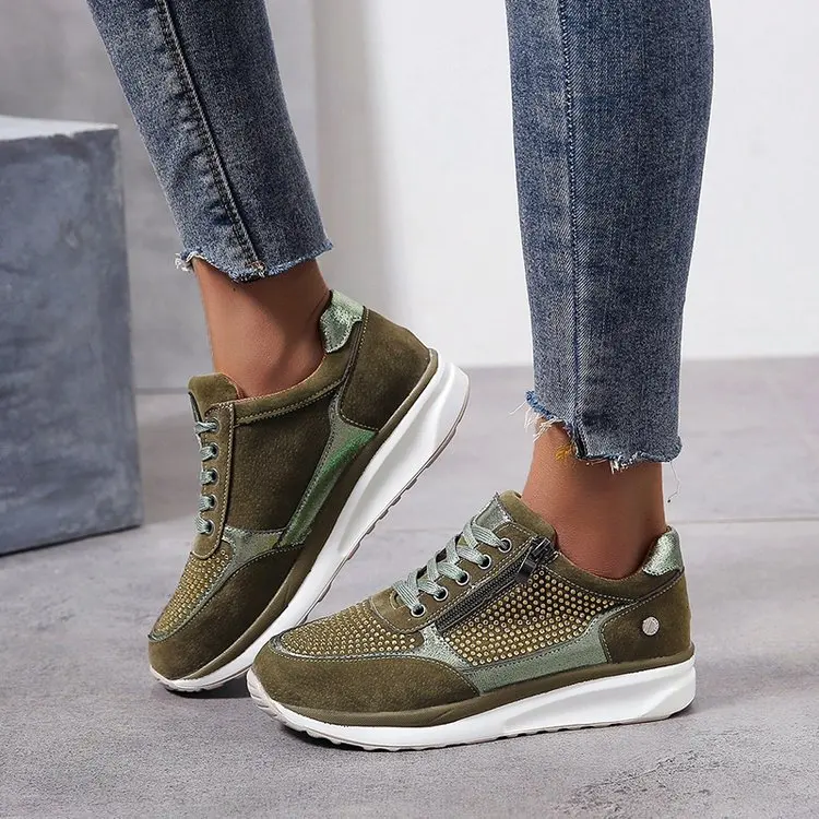 Женские кроссовки с кристаллами, на молнии, на платформе, повседнев...