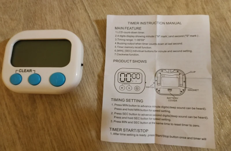 таймеры пришли новой почтой в идеальном состоянии, магнит держит хорошо, звук громкий, цифры видно отлично. сначала немного смутили надписи на китайском но на самих кнопках есть английское значение. так же порадовала кнопка включения и выключения что бы сохранить расход батарейки. товаром довольна, рекомендую как товар, так и продавца)