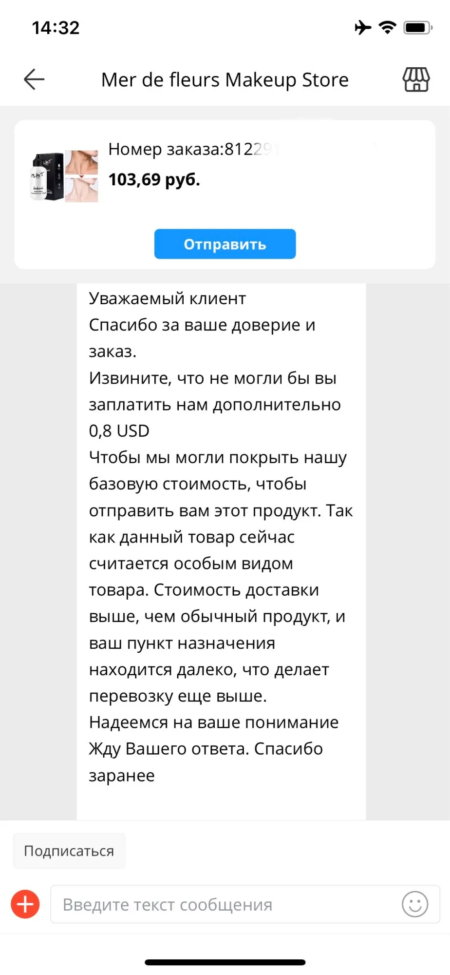 После оплаты заказа, клянчил доплату, прикидывался бедным кетайцем.. Мы ничего ему не доплатили и он дал пустой трек, по которому ничего не пришло. Деньги за заказ вернул добровольно, сразу после открытия спора. Хоть в этом наглеть не стал..