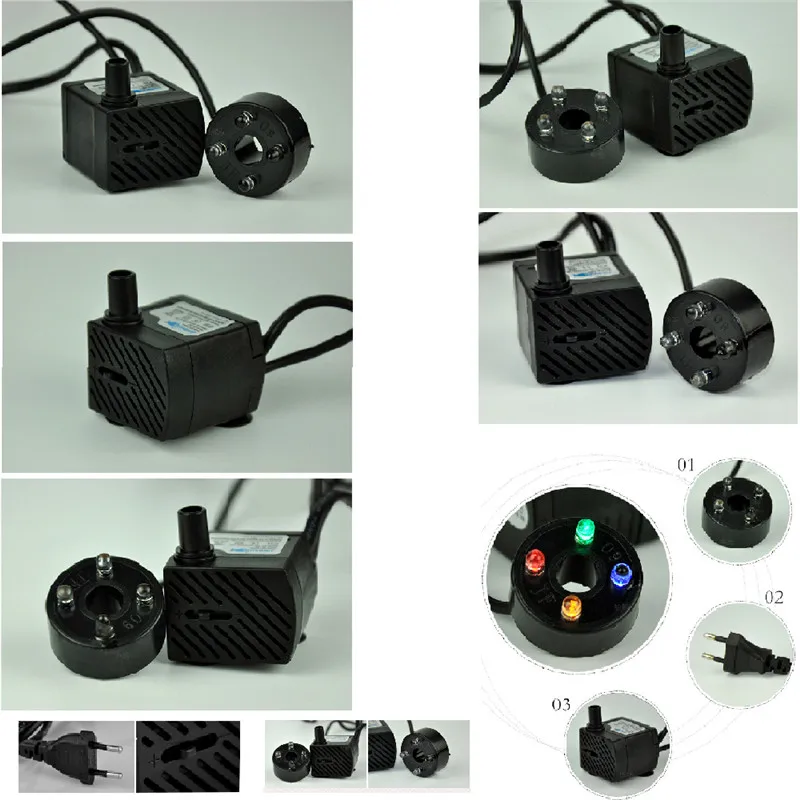 Мощность: 3 Вт, 5 Вт Расход: (3 Вт) Макс. 180 л/ч, (5 Вт) Макс. 300 л/ч Входное напряжение: 220 В переменного тока Номинальная частота: 50 Гц/60 Гц Подъем: 55 см, 85 см Тип вилки: штепсельная вилка европейского стандарта (мы вышлем вам подходящий штепсельный адаптер бесплатно) Светодиодный Кол-во в коробке: 4 Материал: Пластик Размеры: приложение.(3W) 3,8 см x 3,8 см x 2,9 см; 3,8 см x 3,8 см x 4,3 см (в комплекте выпускная труба) (5 Вт) 4,7 см x 4,8 см x 3,4 см; 4,7 см х 4,8 см х 5 см (в комплекте выпускная труба) Светодиодный диаметр пор: 10 мм Диаметр выхода: 8 мм Длина кабеля: 1,5 мм Светодиодный Цвет: синий, красный, зеленый, желтый Оболочки Цвет: черный