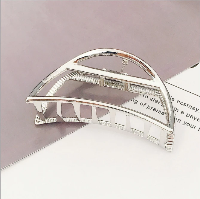 Заколка-краб для волос, металлическая, однотонная, большого размера