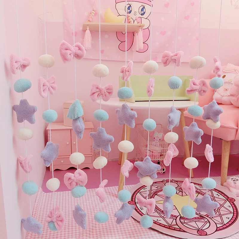 Занавеска с подвеской в виде милых Розовых Звезд, для детской комнаты, для девочек