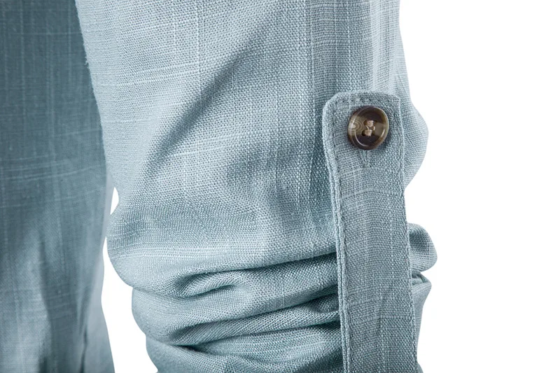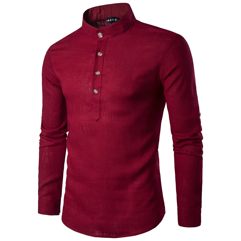 Рубашка мужская с воротником-стойкой, хлопково-Льняная однотонная с...