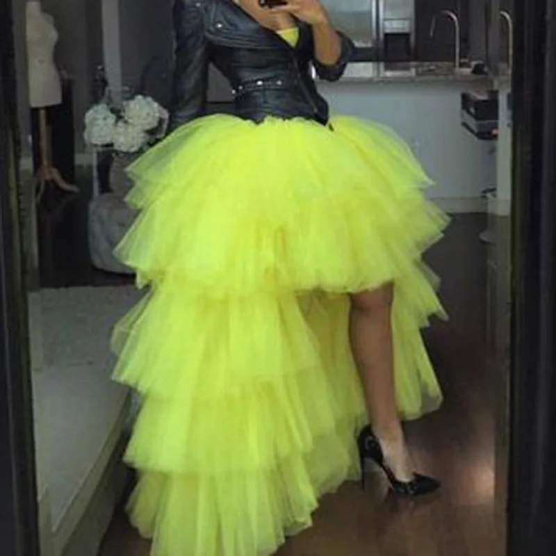 Шикарная фатиновая юбка-пачка с высокой низкой юбкой с многослойными оборками, асимметричное платье для выпускного вечера, юбки на заказ, большие размеры