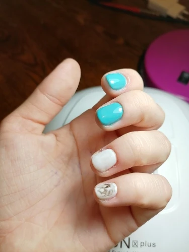 Первый раз себе самостоятельно нанесла гель лак, и успешно, быстро хотелось испробовать, поэтому не выравнивала пластину. Всё хорошо работает, лампа сушит отлично Шло за месяц ems. Единственное пришло два прозрачных геля и одни белый, розового не положили. ☹️