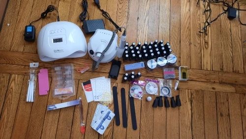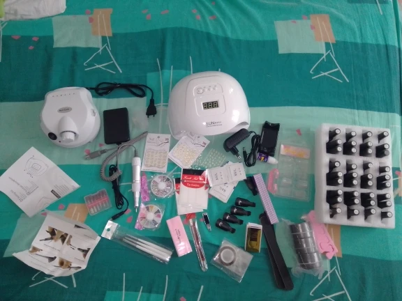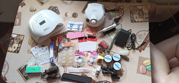 Хороший набор для начала. Решила попробовать сделать себе маникюр и наращивание. Лампа и аппарат хорошие и работают отлично. Лаки из набора тоже нормальные. Гели средней консистенции кроме белого, белый очень жидкий и напоминает гель лак + вообще не сохнет. Пришло все дней за 6, доставка была сдеком. Продавцу спасибо