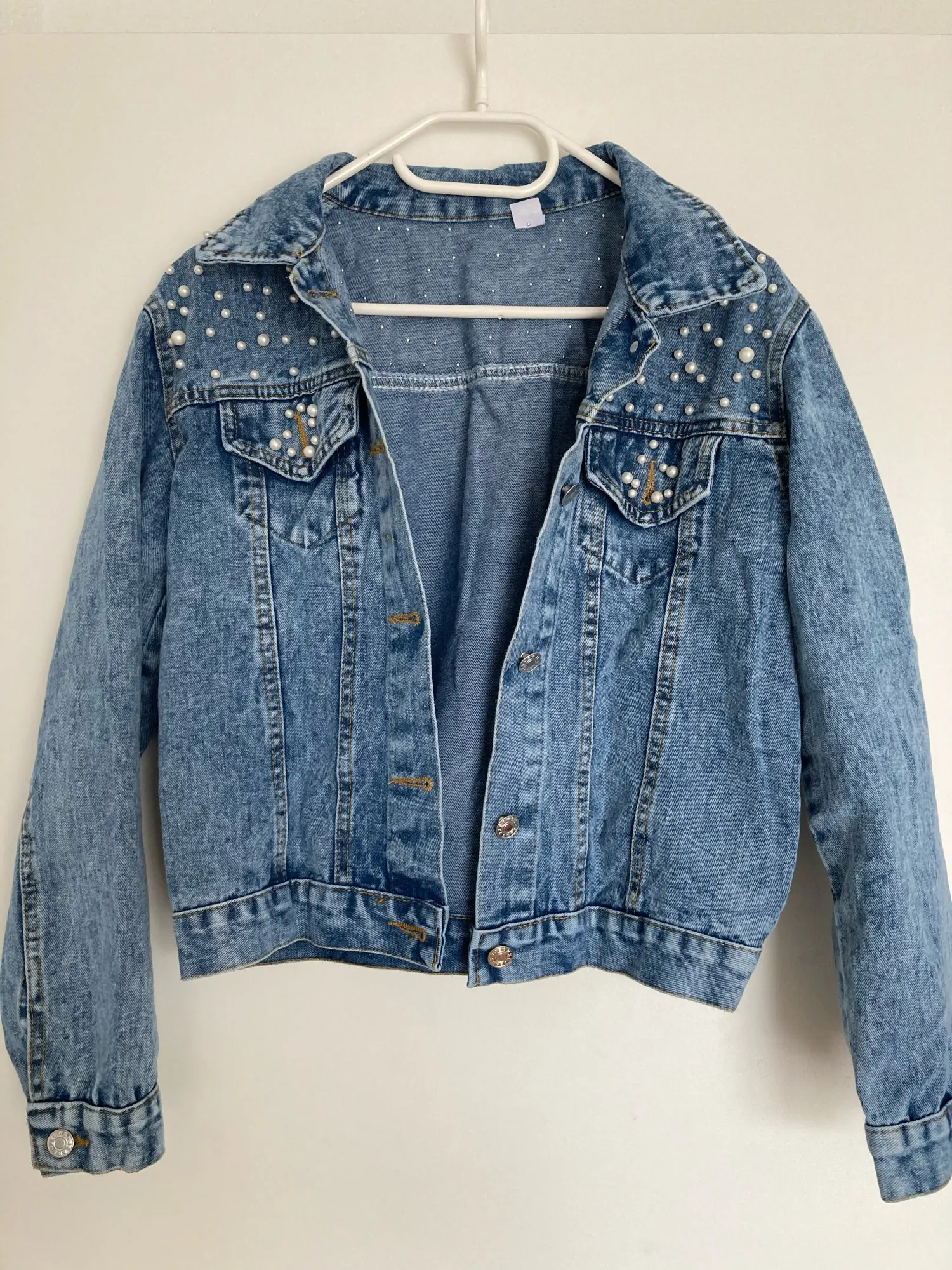 Женская джинсовая куртка с жемчужинами DEAT, свободная куртка с длинными рукавами, на пуговицах, с коротким лацканом, для отдыха, AP446, весна 2022