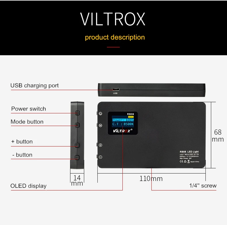 Viltrox RB08 мини светодиодный видео светильник Портативный Камера светильник ing Панель 2500 8500K Bi-Цвет заполните лампы задние фоны для студийной съемки макияж Vlog TikTok