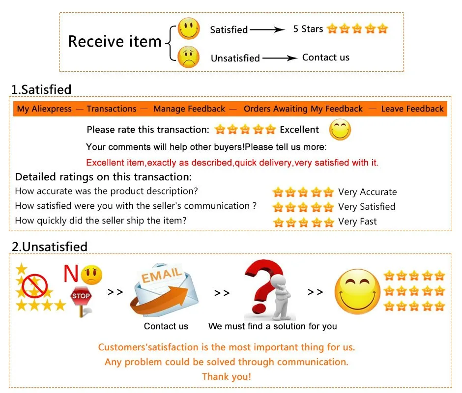 1. Доставка: DHL(5-7 дней) EMS(10-15 дней) авиа-отправление Почты Китая (15 или более дней) Один заказ более 200 долларов США, мы можем дать вам бесплатную DHL доставку 2. Дата доставки: У нас есть много запасов, поэтому после оплаты мы отправим вам груз в течение 1-2 рабочих дней 3, Отзывы 1. Ваши отзывы очень важны для нас, пожалуйста, уделите несколько секунд, чтобы оставить хороший отзыв 2. Пожалуйста, свяжитесь с нами, прежде чем оставлять нейтральные или отрицательные отзывы. Мы постараемся сделать все возможное, чтобы решить проблему и дать вам приятный опыт покупок 4. Оплата: Безопасно оплатить через ESCROW, потому что только вы получаете товары и подтверждаете получение, платеж может быть переведен на мой счет через ESCROW. Пожалуйста, сделайте платеж вовремя, когда вы размещаете заказ, чтобы мы могли отправить товар как можно скорее Покупатель несет ответственность за любые налоги или пошлины, взимаемые в их стране. 4. Политика Возврата: Шаг 1) свяжитесь с нами через центр сообщений Шаг 2) предоставьте как можно больше деталей о проблемах, которые у Вас возникли Шаг 3) товар будет выдано разрешение на возврат Шаг 4) верните товар для согласованного обмена или возврата денег * Все расходы на обратную доставку оплачивает покупатель. 5. Наша философия: -Высшее обслуживание клиентов -Качество продукции и тщательно контролируемое производство -Высокая стандартная логистика и своевременная доставка -Непрерывная послепродажная поддержка и информация Не нужно больше объяснений! Качество продукции-лучшее описание! Еще раз спасибо за ваше прибытие, счастливые покупки!