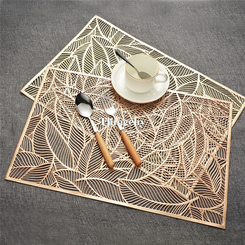 64pcs Rectangular Leaves Gilded Insulated Placemats High-end Hotel ...