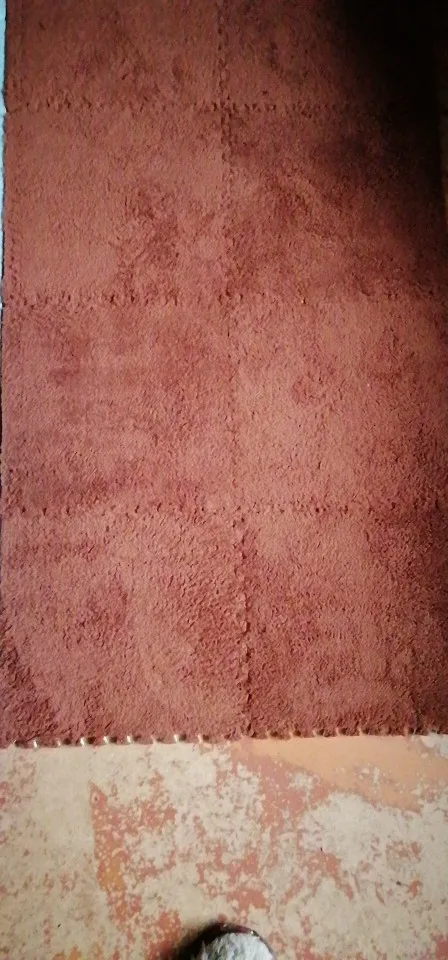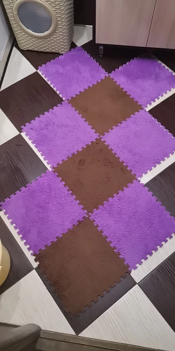 не такой темный, как хотела, коврик слегка шелковистый, может это лучше, проще чистить, потому что те, которые купила раньше чистить какой-то кошмар. Но они мне очень нравятся. На лето можно сложить и убрать в шкаф, а зимой собрать. Брала на пробу, подойдут ли пазлы, все подошло.