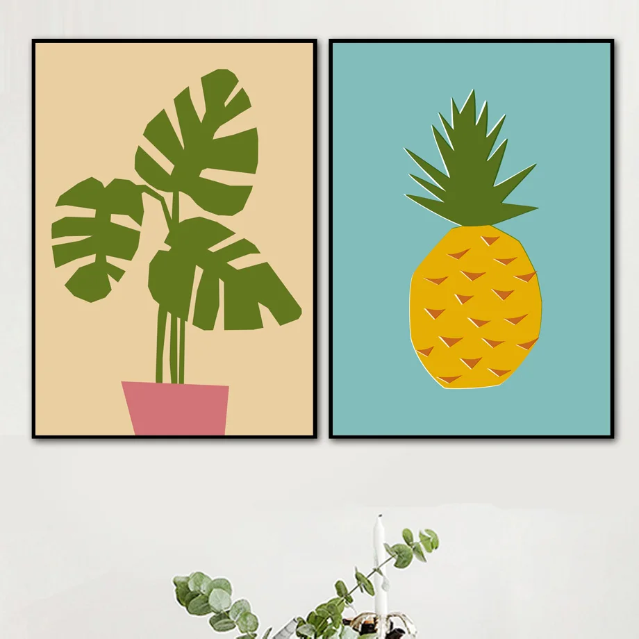 Скандинавские свежие фруктовые растения картина настенное искусство цветок ананас кактус домашний плакат H...