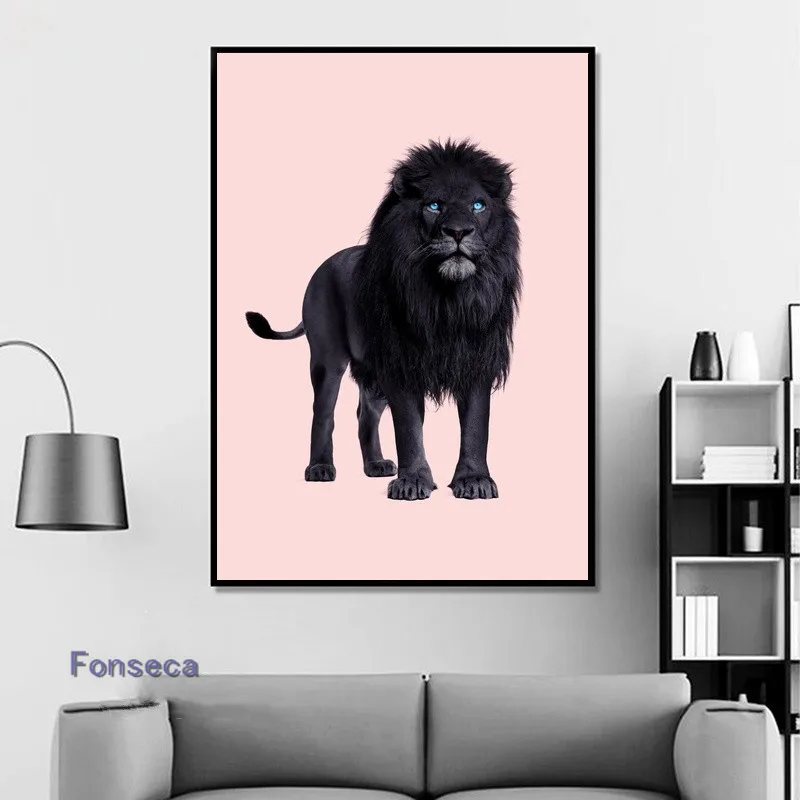 Скандинавский стиль настенная живопись холст розовый фон черный Лев простой стильный...