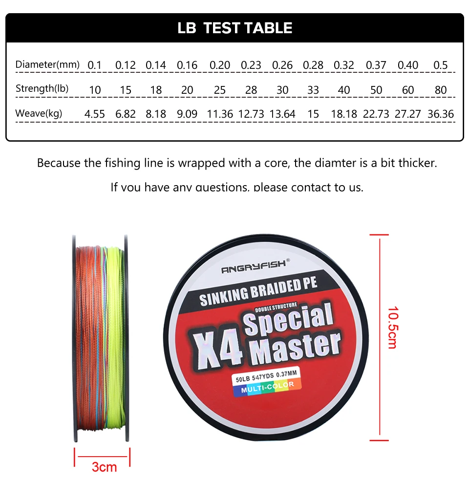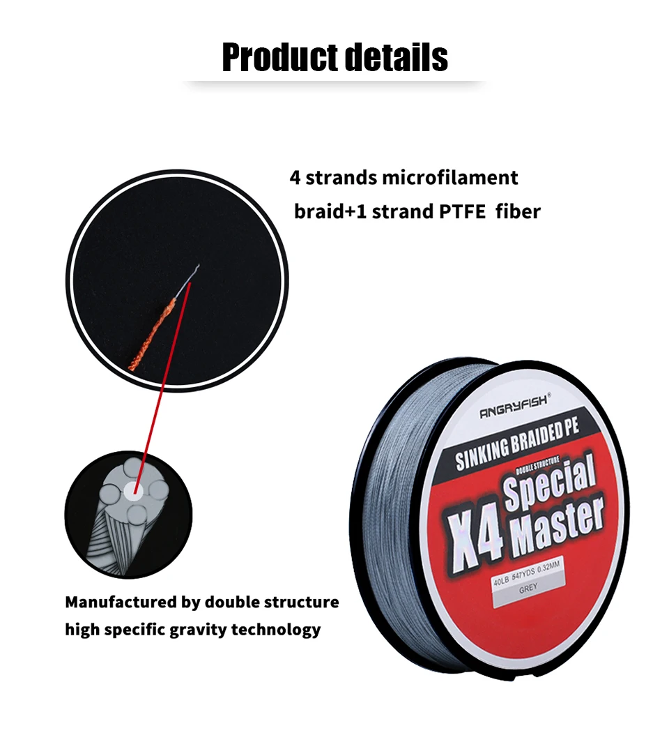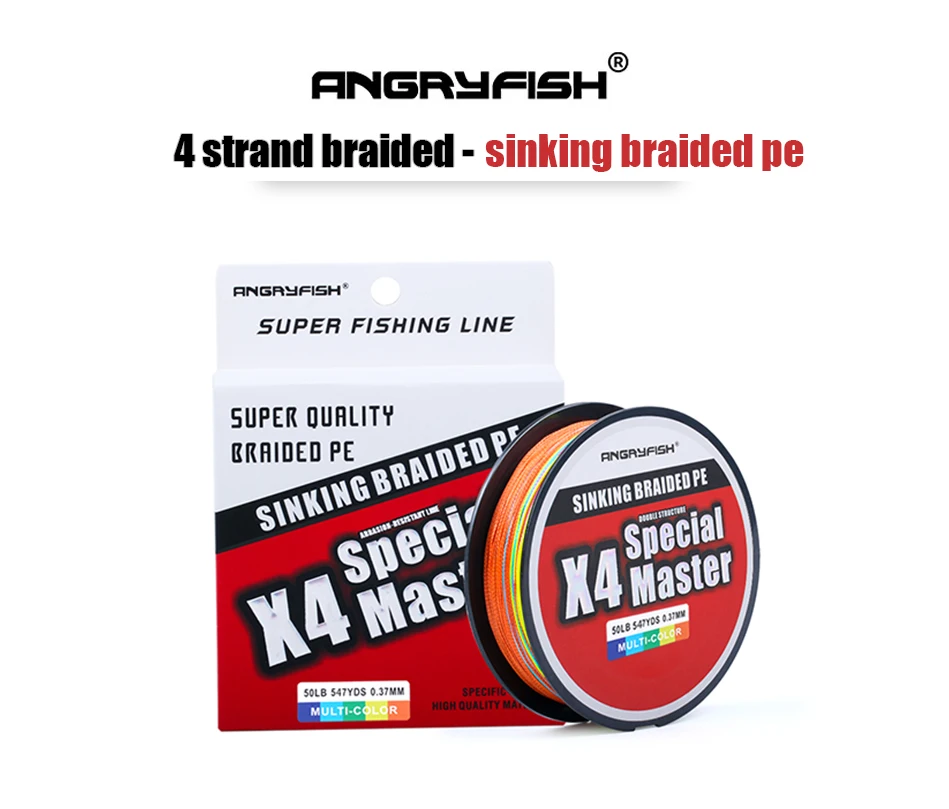 Angryfish 4x500 м, Тонущая плетеная линия, двойное строение, гладкое сильное натяжение, плетеная PE 10-80LB