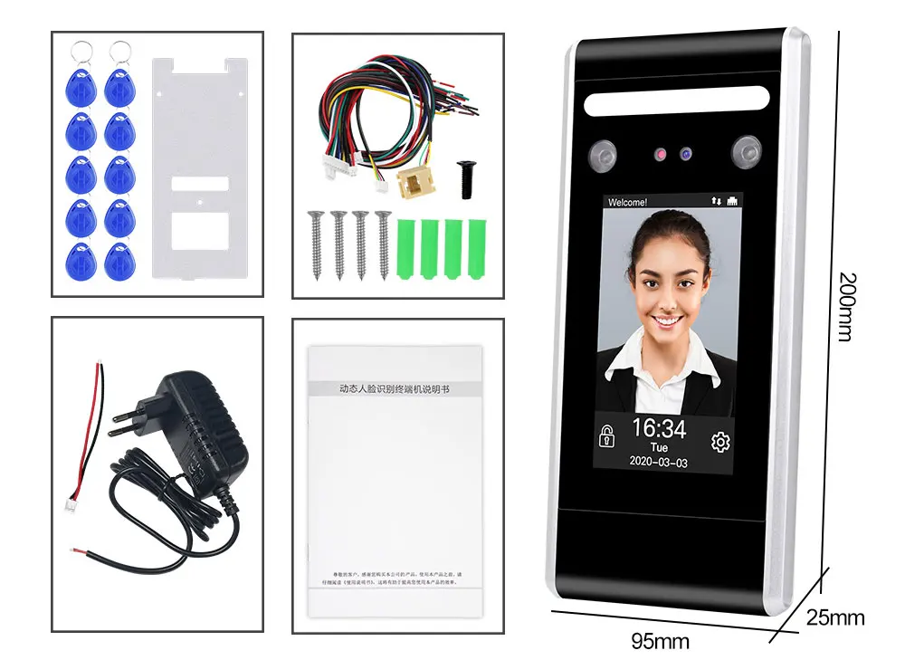 5) Поддержка 2000 face, password, card (опционально), 200000 емкость записи.