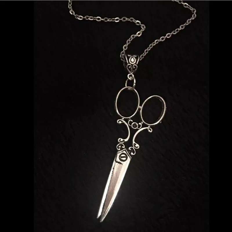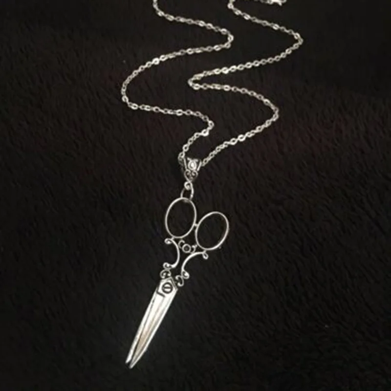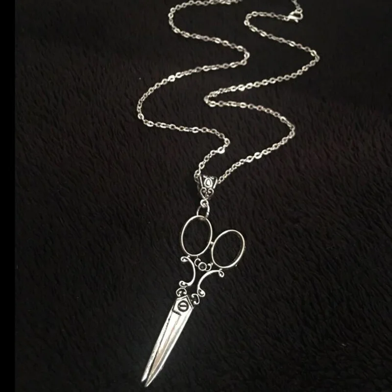 Ожерелье женское, готическое, длинное, с подвеской в виде ножниц, аксессуары в стиле стимпанка