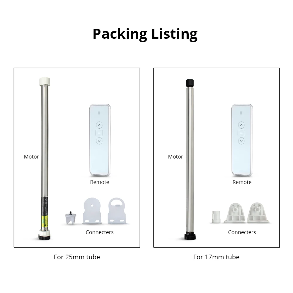 Моторчики хорошие, покупаю не первый раз. 1.4 метра жалюзи открываются без проблем. настройка лёгкая, заряд держит где-то 3 недели если открывать закрывать 3 раза в день. Но этот параметр не стабильный, 1 мотор разрядился 2 других продолжают работать. Покупа, комплект на 25мм идут переходники с 17 на 25мм. Так что при необходимости и 25мм комплект можно использовать на 17мм трубках.