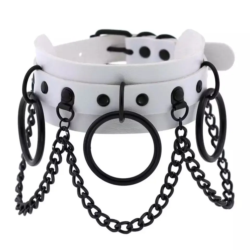 Чокер кожаный, черный, в готическом стиле, в стиле панк, цепочка в готическом стиле