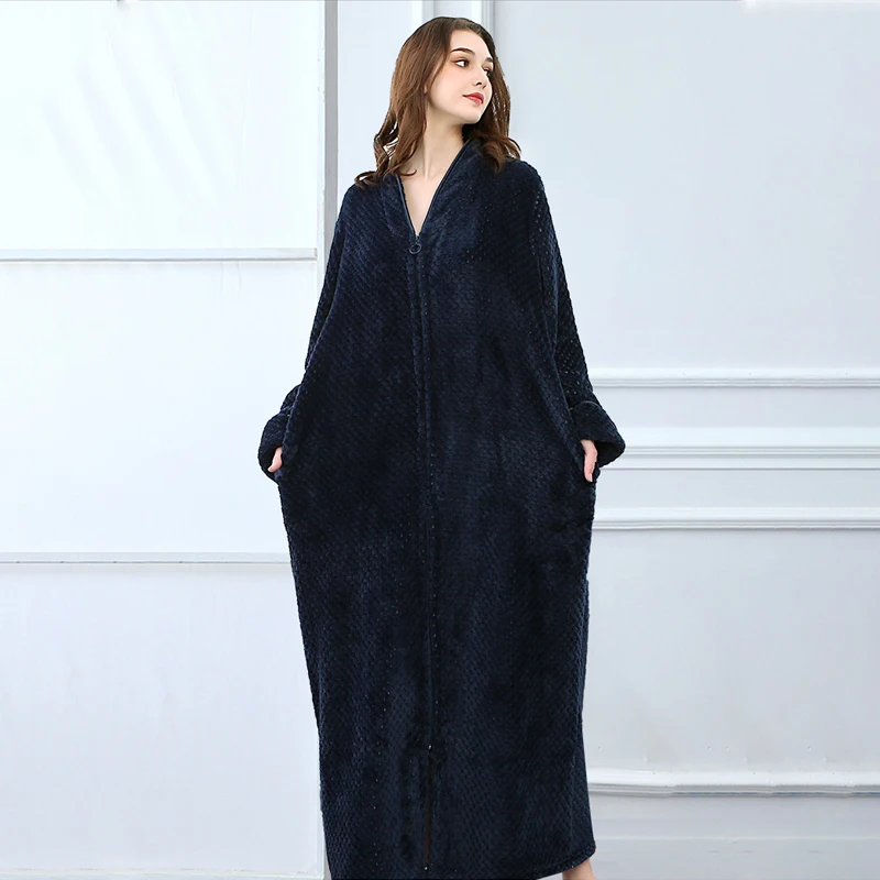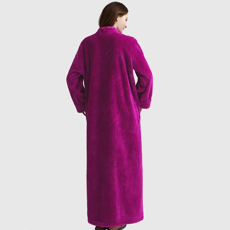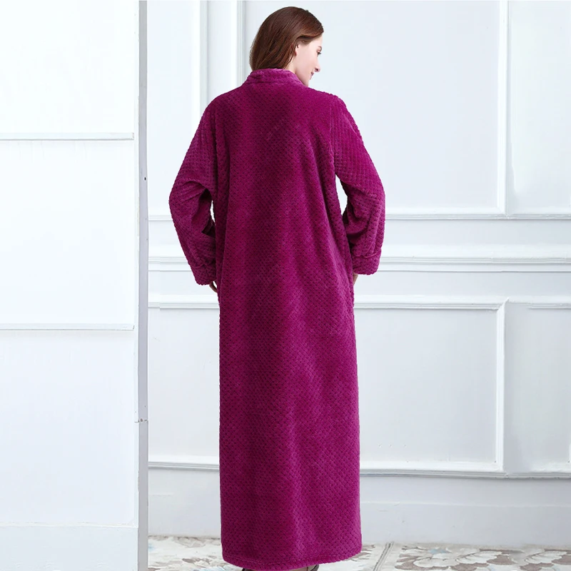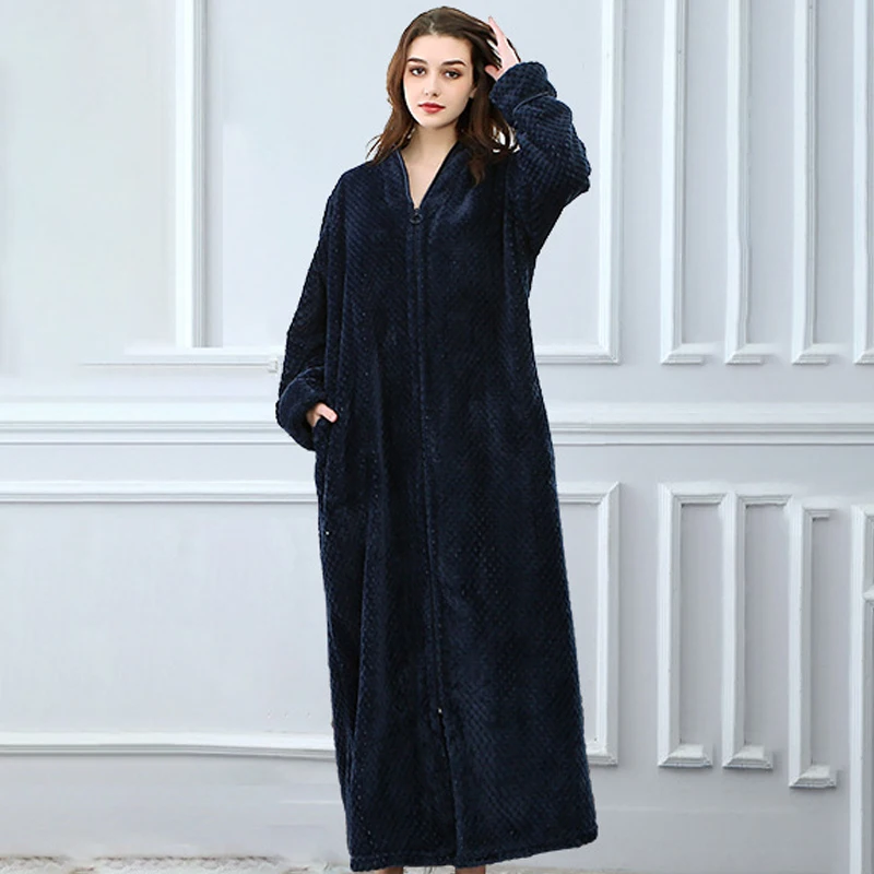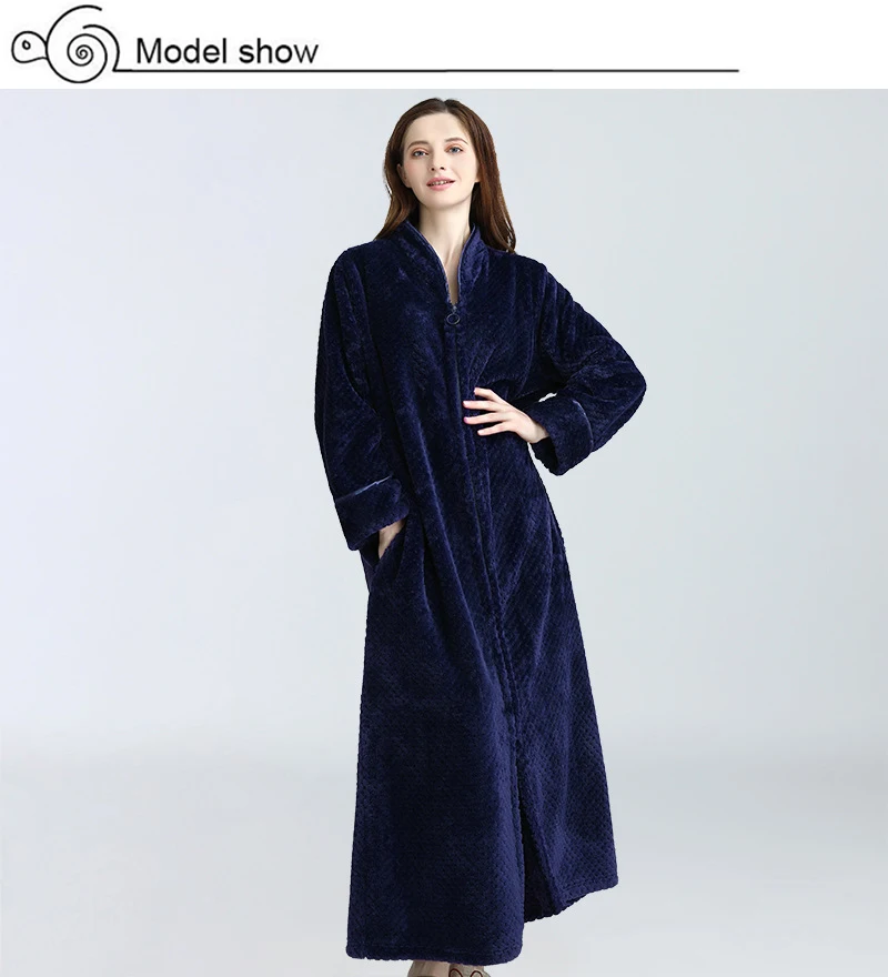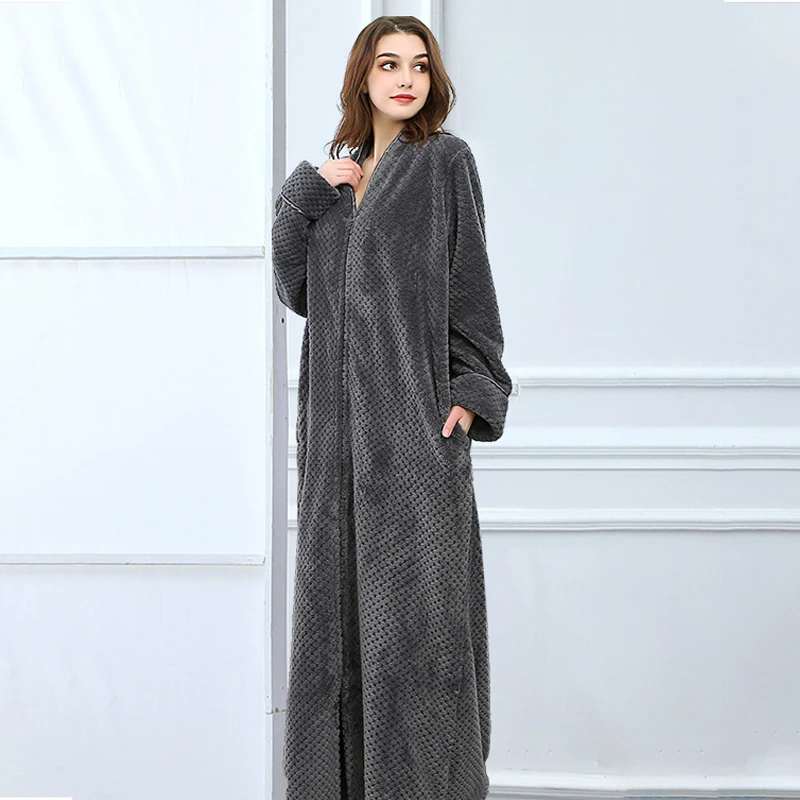 Халат-кимоно Женский утепленный длинный, модный однотонный фланелевый банный халат на молнии, халат на молнии одежда для сна, домашняя одежда