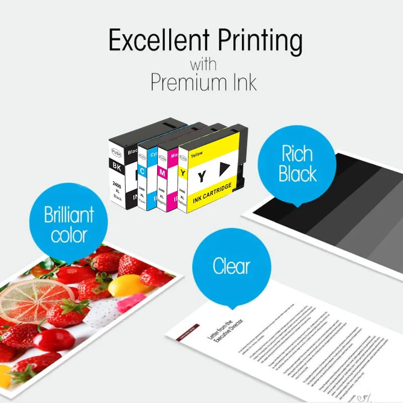 1x Черный чернильный картридж совместим с Canon PGI-2400XL;1x Cyan чернильный картридж совместим с Canon PGI-2400XL;1x Желтый чернильный картридж совместим с Canon PGI-2400XL;1 пурпурный чернильный картридж, совместимый с Canon PGI-2400XL.