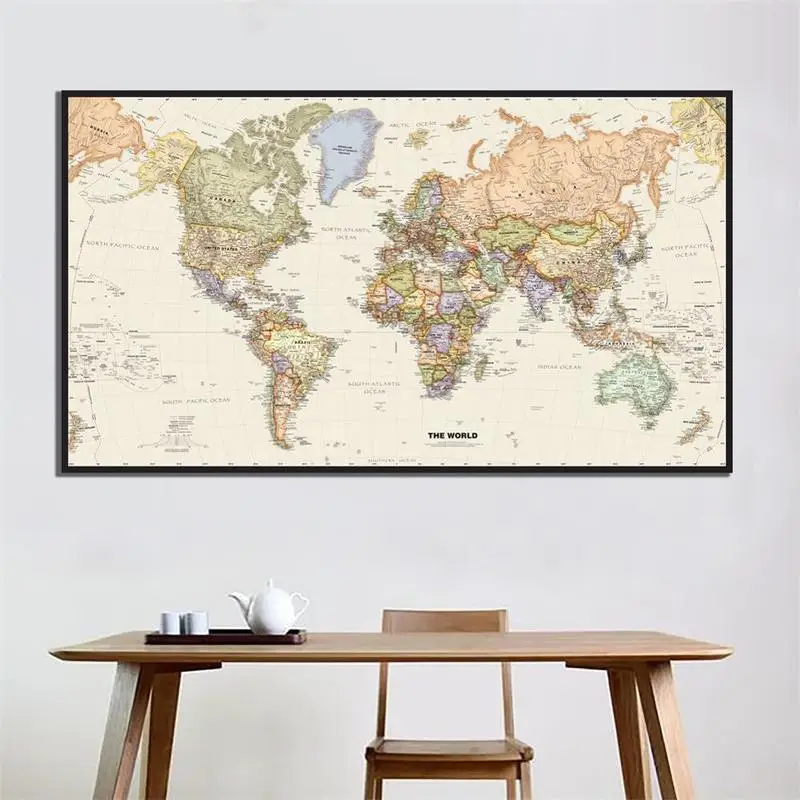 2x4ft во всем мире физическая карта HD холст для живописи офиса школы карта мира стены Стикеры для домашнего декора офисные и школьные принадлежности