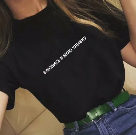 Принт в виде русских букв, футболки для женщин с надписями, графиче...