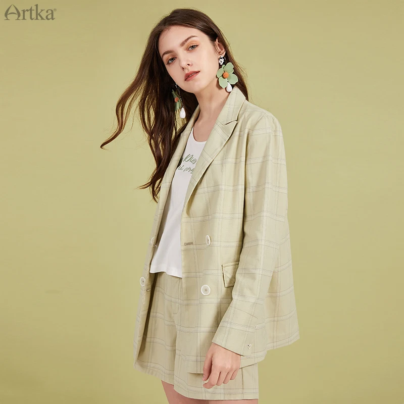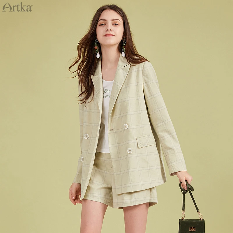 Женский пиджак и шорты ARTKA, повседневный пиджак в клетку, в стиле ретро, WA20102C, весна 2020