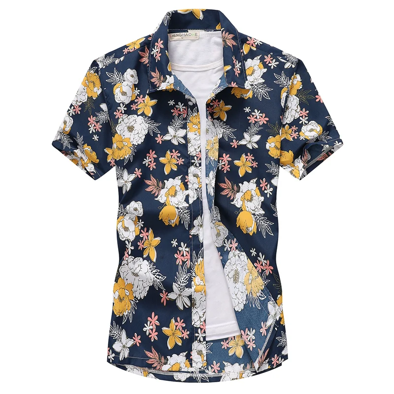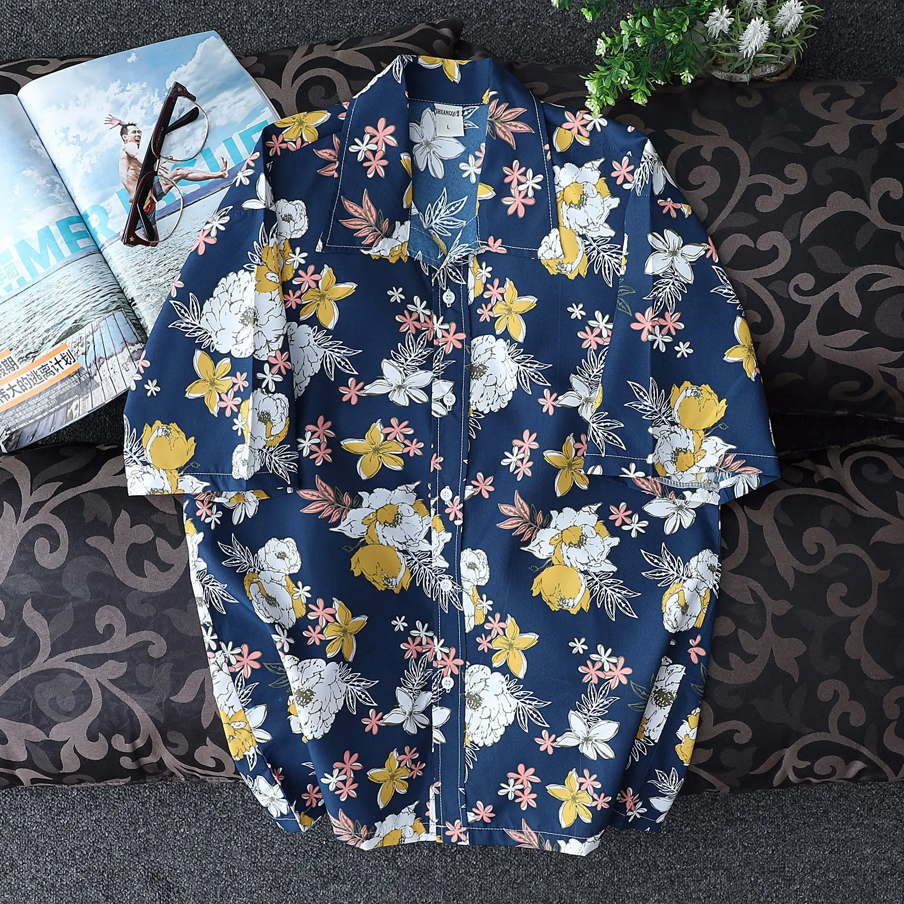 Гавайская рубашка для отдыха с цветочным принтом, Мужская Летняя По...