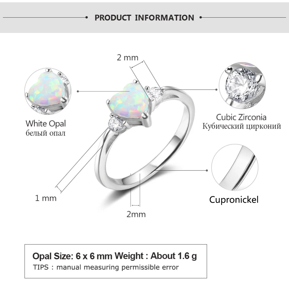 Серебряный Цвет кольца в форме сердец, голубой опал кольца для помовки CZ палец кольцо с кубическим цирконием, помолвки, свадьбы, подарок, модное ювелирное изделие для женщин